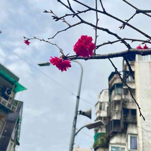 艶やかな赤ピンクの🌸╰(*´︶`*)╯♡ こちら様はどなたでしょうね。やはり幹は桜っぽいのだけど…😅 沖縄の知人から赤い桜は寒緋桜では?と ググってみましたら寒緋桜は台湾原産。 河津桜の片親で1月〜2月に開花と。 やはりカンヒザクラでしょうか^_^ 🇹🇼お写ん歩中🚶♂️