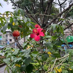 名前の分からなかった蕾に花が…と喜んでいましたら…なんとハイビスカスと同じ鉢にアブチロン🏮が一緒に植っていたようです🙀 ちなみにアブチロン・ショウジョウカの蕾はランタン🏮なんですが、スクリュー型の蕾のハイビスカスに似た花をつけるので一部ではハイビスカスとして流通もしているよう…!(◎_◎;) 入り乱れていた幹を辿ってよく観察してみれば葉っぱの形状が違っていました。訂正してお詫び致します🙇♀️ …と、言う事で現在アブチロン🏮の蕾の開花待ちになりました😂 台湾🇹🇼お写ん歩中🚶♂️