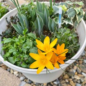 デッカー植えのビオラさん 徒長してきたので切り戻しました(*´꒳`*) さっぱりしたら3日後にはクロッカスが咲いてました♪ 他の球根達もぐんぐん成長中 お日様すごいですねぇ(*´◒`*)