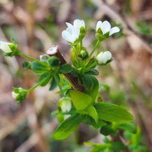 “ユキヤナギ” “今日のお花”の“ユキヤナギ” 我が家の“ユキヤナギ”は❔ と思い今朝覗いて見れば… 数輪ですが花を付けてました😂
