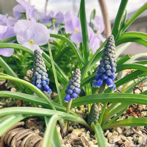 ムスカリ咲き始めました! 球根植える時取り外した小さい方からもつぼみが伸びてきてくれました。嬉しい💕