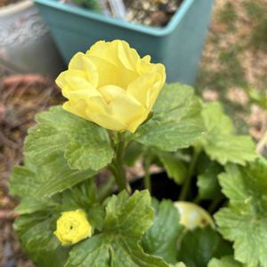 夏越しした2年株の ラナンキュラスラックスハリオス 開花しました 一番花は黄色が濃い♪ たくさんの蕾が待機中 去年の倍以上の大株になり たくさん花が咲いたら 水遣りが追いつかないのではないかと心配です #ラナンキュラスラックス #ハリオス