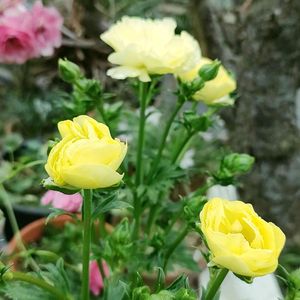 黄色いラナンキュラスラックスの苗を買いました♪ 今ある3年目のピンクのラックスが元気ないからです… 根っこがごちゃごちゃしてたからだいぶ取ったけど… 無事花を咲かせてくれますように祈ります🙏♪♪