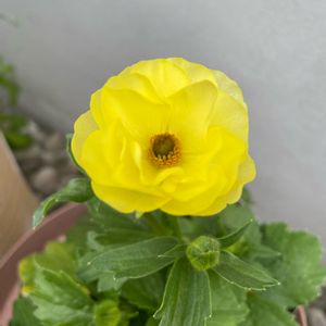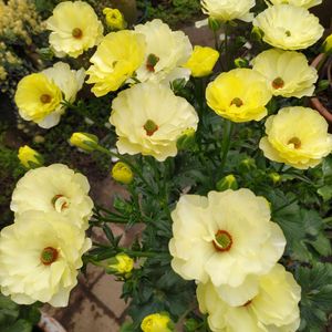 ラナンキュラス ラックス ハリオスさん🌸 咲きました〜💛💛💛 ライトイエローのお花が とっても優しい感じ💕 たくさん蕾付けてくれているので楽しみ〜🥰 後ろのラックスさん達も もうすぐ咲いてくれそうです😊