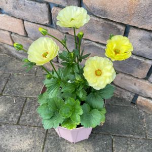ラナンキュラス・ラックス ハリオス💛 3年目のハリオスが少し前から咲き始めました🌼🌿 一度も株分けしていなかったので子苗が沢山増え、春に植え替えしましたがもう1つの鉢も咲いています♪ 流石に昨年よりも花数は少ないですが、咲いてくれて嬉しいです✨✨💖