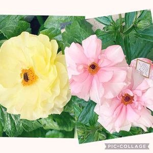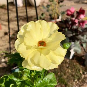 昨日お迎えしたラナンキュラスラックスハリオス ラックスはワックス感をうまく撮影するのが難しい… 明るいレモンイエローの可愛い花 去年からいるアリアドネのピンク& キュベレーのアプリコットオレンジと 一緒に咲く姿が見られたら良いです✨