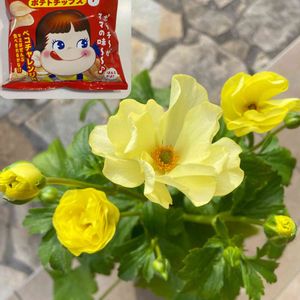 🏷ペコちゃん祭り 参加します 先月タイミングよくGETできた ペコちゃん味のポテチ💕 じゃなかった💦 ミルキーをイメージした練乳パウダーを配合した 甘じょってぱいお味のポテチさん💕💕💕 ポテチ〜がママの味〜〜♪ だそうです💖 ちなみに私は好きなお味かも〜😂😂😂 お花は… 先日のラナンキュラスラックス ハリオスさん💛 いい感じに開いてくれました💖 次の子達も開きそう〜 蕾もかわちいのよ〜😍😍😍