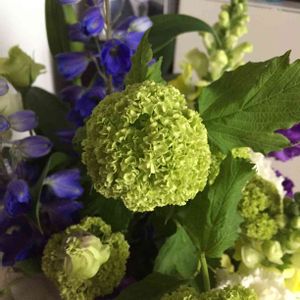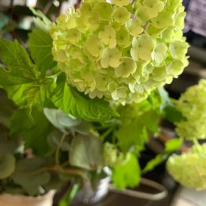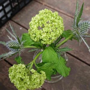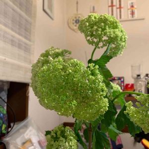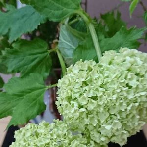 スノーボールの咲いたところを見たいというリクエストがあったので単体で撮りました 小さな花の大きい塊だけどグリーンと白なので清楚な雰囲気