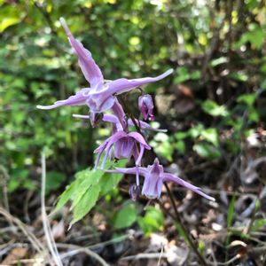 メギ科イカリソウ属 イカリソウ ちょっと細長いハート形の葉。 四方に長く飛び出す距。花の形が船具の錨に似ているので、イカリソウとついたそうです。 明るい尾根道に咲いていました。 漢方薬にもなるんですって! お酒に漬けると効果ありと聞きましたが。 4.20 高尾山