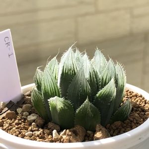 今日のハオルチアは「CR-1」です。 ベヌスタとオブツーサの交配種ですね。ベヌスタが強く出ている品種で、葉の大きさはオブツーサ寄り。迎え入れてから約半年。仔吹きはまだ見られません。葉挿しは何となく成功しそうな感じの葉のイメージです。 もう少し様子を見たいと思います! (*^^*)