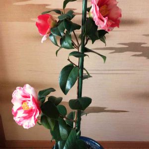 椿・岩根絞りがまた咲きました🙌 室内で撮るとシックな色合いになりました😊
