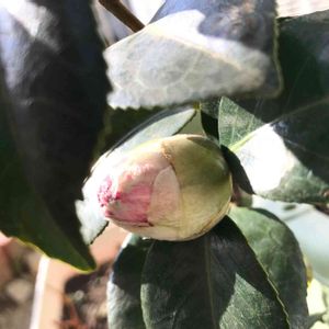 椿の蕾。 まだまだ固くギュッとしてますが、少し色付いてきたようです😊 岩根縛りという種類で、今月我が家にやってきました。 植物に全く興味示してなかった主人が「自分の花が欲しい」と突然言い出したので、バレンタインに買ってあげたものです。 私が欲しい花に色々誘導しましたが、選んだのは予想外のツバキ。 なぜ椿?と思いつつも、花が咲くのが楽しみです😄