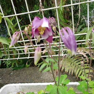 おはようございます 今朝の庭より オダマキ3種類可愛く咲いています。 ホムセンで、家にないオダマキを見ると買ってしまいます😅 もう植える所もないのに、意志の弱い私です😔
