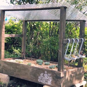 お久しぶりの投稿。 真夏の暑い頃から複視の症状が出始めてしまい、今までの実家との往復に加え、通院したりとなんだか忙しい日々を過ごしておりましたぁ💦 多肉ちゃんのお世話も手抜き放題で、ちょっと哀れな感じ…ごめんよぉ〜🤣 9月中旬からは治療の為3回入退院し、今は服薬。 幸い副作用も今のところそんなになくて、複視は相変わらずだけど、気ままに過ごしています😄 花壇の七福神が大きく立派になってきたので、冬までに屋根作ってあげなきゃ〜って事で、入退院の合間合間に作業開始。 前に頂いたタンスの引き出しに屋根つけてみました! コレで冬乗り切れるか? 七福神のお引越しは日当たり見てボチボチと… 夢中でこんな事やってるのが、ストレス解消に1番な私。 明日から気温はグッと下がるみたいだし、多肉の季節を満喫しようっと❣️