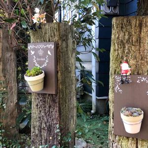 ちょっと気が早いけど… 裏側の真北。 全く日が当たらない💦 しかし道路に面してて人も通るので、ちょっとクリスマスっぽく飾ってみましたぁ🎄 また今治タオルの桐の蓋(笑)