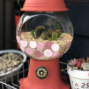 パクリ〜❗️ カインズホームに飾ってあったガチャ風、どなたかも載せてたのがとても可愛かったので、完コピ💦 すぐパクります(笑) 中のサボちゃんはお隣のお爺ちゃんにもらった子の赤ちゃん😊