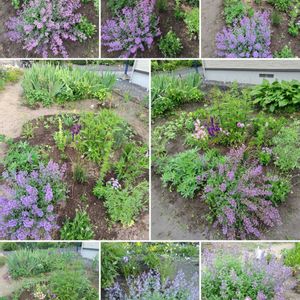 こんにちは😊 外は暑すぎて、家の中へ逃げてきました🥵💦 庭仕事は諦めて、秋からのガーデニングプランを考えます🙌💓 1枚め…googleフォトから、写真が届きました💓 サークル花壇の写真を集めてくれたようで、庭作りの参考になります😅 数年前から、ここは大好きなネペタ(キャットミント)に合わせてブルー💙系の花壇にしていました😆👌 2枚め…今年の春先の様子💓 昨年からサークルの真ん中近くに、ピンク🩷のモナルダを植えてみました😂 その前に赤いタチアオイにしたこともありましたが、速攻で抜きました(笑) 3枚め…現在の様子😅 ピンク🩷のモナルダは、花はかわいいけど、咲くまでが長くて草丈がグングン伸びて、他の花とのバランスも悪くて悪目立ちしてました⤵️⤵️ (だから写真がないのね😂) 今は切り戻して骨だけです😅 来年は、ボリュームを抑えるため、咲く前に切り戻して、草丈を抑えようかと思います😉👌 いろいろ試行錯誤して納得のいくお庭にしたいです(笑) 4枚め…和庭のカクトラノオ🩷✨ 暑さで他の場所は枯れる中、和庭のは咲いてきました⤴️⤴️ 5枚め…ヤブラン💜✨ あちこち株分けして、暑さにも寒さにも移植にも強いヤブランです⤴️⤴️ 🏷️お庭作り中 引き続き、残暑にお気をつけて〜🙇💓