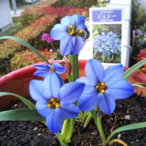✤✥ハナニラ✤✥ 今まで見てたんだろうけど見てなかった花😅 やわらかな日ざしの中、ぽっ、ぽっ、とまるで地面の上に置かれたように花を開く花〜💞 その愛らしい花には気品さえ感じられ、思わず見とれてしまいました (v_v。)人(。v_v)ポッ いつもの園芸店で見かけて この色に惹かれて植え付けましたー✨😁✨ 日本には明治の中頃に、アルゼンチン原産の「ユニフロラム」が輸入され、葉の形や香りがニラに似ていることから、ハナニラの名で広まりました。タネからでもよく殖える花なので、今ではこぼれダネで殖えたものが、各地で野生化しているそうです。