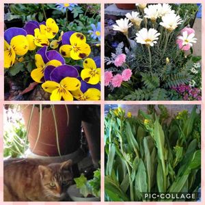 こんにちは 暖かくなってきたので、今咲いているお花を 見ていただきたいです お花屋さんへ何回も通って、やっと買うことが出来た お花さん達ですが、天候が悪かったり土が無くなったり 今外工事していたりで、一週間も植えてあげられなくて 鉢の上に乗っているだけの子達です ビオラは八百屋さんのお値打ちのポットに入って いましたが、綺麗に沢山咲いてくれました 休耕地にもう何年も頑張っている冬菜を頂きました 河川敷を耕せなくなってもう10年以上経ちます 野の花のようにたくましく生きる力を食します 可愛いちびっ子の赤い子は、最近遊びに来る新人さん この子は一日に何回も遊びに来てくれる女の子です こちらでは赤い猫さんは珍しいです 私の家に遊びに来る猫さんを見たいと言って いただきまして、ありがとうございます 今日も見ていただきまして、ありがとうございました