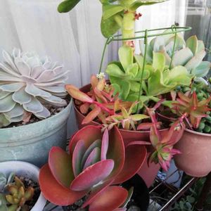 こんばんは🌇 我が家一番大き子(白鵬) 下のセダムの鉢2.5号と比べる、かなり大き 名前と同じ相撲タイプ😅