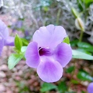 レウコフィルムが、炎天下をものともせず満開になりました。 ①太陽に向かって ②昨夕はこんな可愛いつぼみ ➂今朝になったら ④そばのゴーヤが絡み付いて ⑤真夏が大好き 1日中太陽を浴びて、乾いた場所を好む、北アメリカ南西部からメキシコ原産の小低木。 冬でも落葉しないシルバーリーフ -5℃まで耐えられる。 病害虫も殆どない優等生。 昔々🌊だったらしい砂地の庭がこのお花にとっては快適のようです。