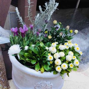 ウッドデッキ前に置いていた寄せ植え 鉢が小さすぎてすぐ水切れ起こすので大きい鉢に植え替えしました。 元気のないデージー、オステオスペルマムごめんよ😢 広くなったので ラベンダーエンジェルピンク👼 寄せ植えの楽しさに最近目覚めて来ました。寄せ植えってたのしい(o^^o) 季節ごとに寄せ植えを作っていきたいなあと思いました。