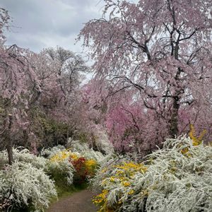 娘からかわいいユキヤナギの写真が 送られてきました 私の住んでいる札幌はまだまだですが 花壇はもうすっかり雪が溶けて ちらほらかわいい芽が🌱🌱🌱 pic2は桜の下で実際に撮った写真を チャットGPTでジブリ風に アレンジしてもらったそうな! 他にも、こち亀風とか サザエさん風やワンピース風とか リクエストに答えてくれるらしいですよ😳 すごい! 私もやってみたーい😆