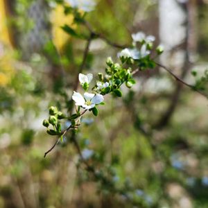 今日は24℃。雪柳が咲き始めました。隣に芽が出ているのは黄色の小菊です。(鉢の左右は約22cm) 3枚目は、あめりと雪柳です。 It's 24℃ today. The Spiraea thunbergii has started to bloom. The yellow chrysanthemum is budding next to it. (The left and right sides of the pot are 22cm) The Third photo is Amelie and Spiraea thunbergii. 🌼🌱