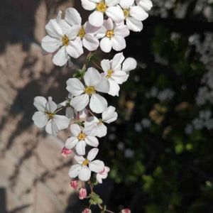 大好きなパン屋さんの前にて。 まだ、時折冷たい風で肩を竦ませる日。 ひらひら飛んできた花弁の正体。 粉雪のように待う姿は、お名前の通り。 花言葉は、 『愛嬌』『愛らしさ』『賢明』『殊勝』『静かな思い』