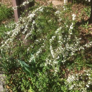 モッコウバラを去年植えたら… あ…根元からユキヤナギが咲き出した(*´∀`*) 苗にオマケが付いて来てたみたい♪
