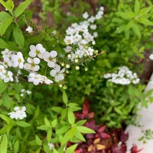 ゆきやなぎの花です。 季節を間違えた子がひっそり咲いてました😊