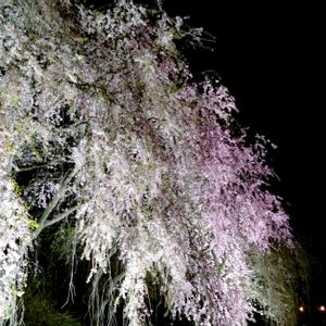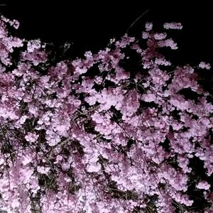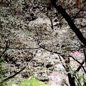 ちょっと前、通りすがりにライトアップの灯りにつられ、夜桜見物。雨上がりなのでかなり散った後でしたが綺麗✨