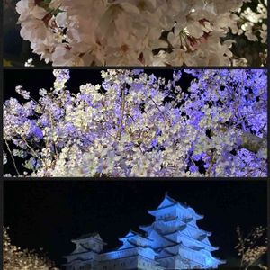 昨夜、姫路城の夜桜会に行って来ました。 4月2日は、世界自閉症啓発デーでお城がブルーにライトアップ💙 満開の夜桜🌸幻想的で綺麗でした。