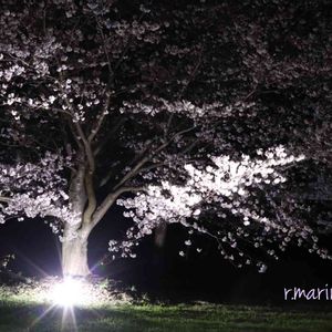 公園の夜桜 コロナ禍の為、今年もライトアップなし(..) 手持ちのライト使用して二ヶ所から当ててみました 想像していた夜桜にはなりませんでしたが、これで我慢がまん アシスタントの旦那さま、ご苦労様~