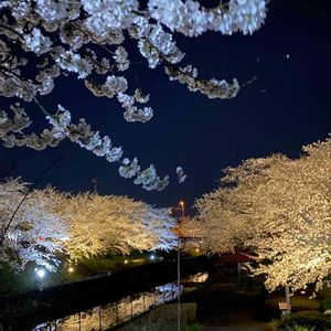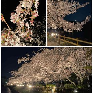 2021・4・2晴れ おはようございます😃 先日 京都府の某所に 主人と 愛犬を抱っこして 夜桜を見てきました😊 ぼちぼちと 夜桜見にきてる人が居たけど 思ったより少なかった