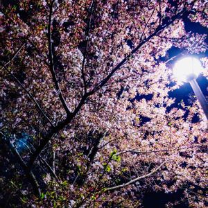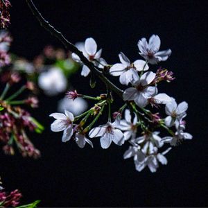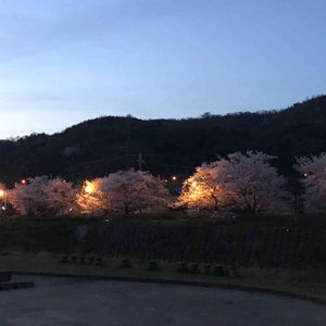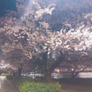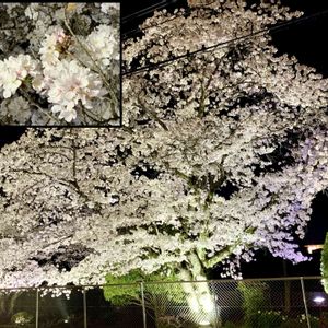 仕事帰りに街灯の灯りに照らされた桜をパチリ🌸