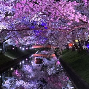 五条川の夜桜💕 とても幻想的で綺麗でした😊💕 音楽も流れていて、癒されました😊 4/7撮影❣️