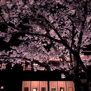 夜いたう更けてなむ 事果てける ( 花宴 ) 紫宸殿の桜の宴は夜もたいそう更けて終わりました。物語では宴の日の夜、光る君は須磨へ退去となる原因となった女性に出逢うのです。いいこと思いついたので宴が終わったころを想って夜桜撮ってきました📸 夜でも桜そのものが持つパワーは偉大でした。