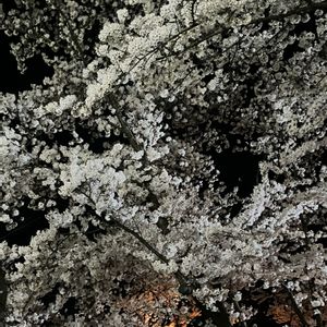 街の夜桜 遅くなっちゃった、早く帰ろ と地下駐車場を出た正面に白く浮かぶ満開の桜 あらもうこんなに咲いているのね 知らなかったわ 最近テレビもニュースも見てなかったかも、、 春ですね🌸 #夜桜 #お花見 #染井吉野ではないような