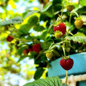 イチゴも色付きはじめ、ラズベリーも無事に結実。 収穫と言うには少な過ぎだけど😅初ラズベリー、楽しみです。