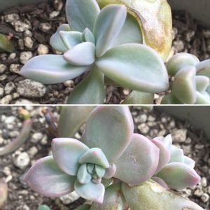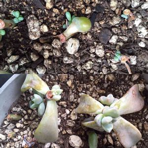 チョッキンしたものの、キツキツに鉢にこすれていたので、思い切って赤ちゃんの出ているところを考えて、さらにチョッキンしました!葉もバラバラに。 葉挿しっ子と共に大きくなーれー❣️