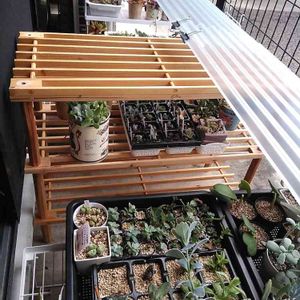 GW中に多肉棚の配置換えをしました😊✨ ひさしがあまりないベランダに全面遮光ネットも張りました❣️ 南向きの超日当たりのいいベランダでの初めての夏を前に試行錯誤していますε٩( > <)۶з