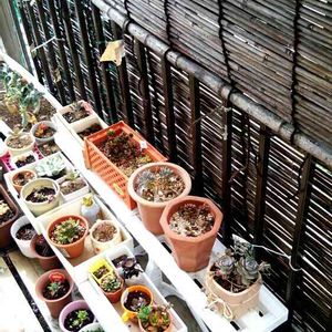 先日、陽当たり良すぎるベランダの柵に旦那さんにお願いして家に余っていた簾を掛けてもらったよ♪ 我が家のベランダはもろに南向きだから冬~春は良いのだけど、これからの夏の季節は多肉ちゃん達には少し過酷な暑さになってしまうし広さ的に多肉植物用のゲージみたいなのも置けないので簾は有り難いです!! 雨も多少は防げるし、丁度良いかも☆