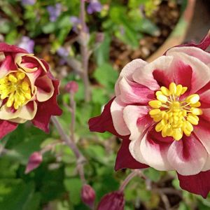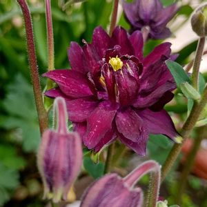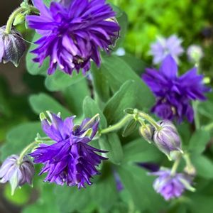 去年お迎えした八重咲きのオダマキが可愛く咲いていました😊