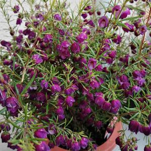 ❁. 。ボロニア'パープルジェラード'。.❁ 濃い紫色の花を咲かせる レアなボロニア𓍯 柑橘系のとっても良い香りがします🍊 つい立ち止まってしまうほど魅力的な香り👀 この香水が欲しいぐらい💭 花はベル型で愛らしいですよね✽.。 春にたくさんの花を咲かせます! 赤ワインのような色合いが シックで大人っぽさが感じられます🍷 柑橘系の香りは癒し効果があるので ぜひ見かけた際は香りを楽しんでみてください🌿 *育て方* 日当たりの良い場所を好みます☀︎ 水やりは土の表面が乾いたら あげてください。