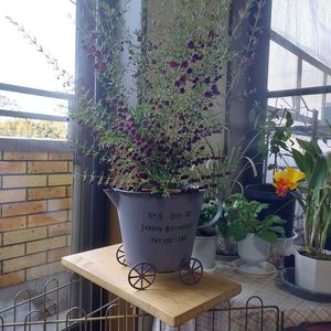 一昨日、日本ライン花木センターでお迎えした🇦🇺オージープランツのボロニア パープルジェラート💜 この紫色と香りに惹かれましたが、暑さ寒さに弱いとか…😂来年まで保つかな…😅