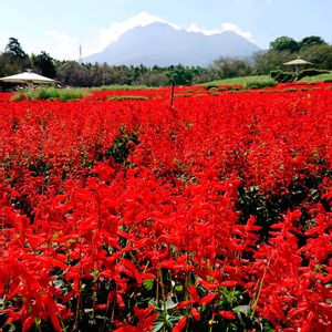 おはようございます🎶 昨日は島原市有明町のフラワー公園へ行って来ました🎵 1️⃣、2️⃣サルビア(シソ科) 駐車場に入ると真っ赤なサルビアと雲仙岳(1483m)が、目に飛び込んできました‼️ 満開でとても綺麗でした😻 ハーブや薬用として使われる品種で、ラテン語のsalvare(救う)が語源だとか…🤭‼️ 3️⃣、4️⃣ブルーサルビア(シソ科)! 別名ファリナセア! サルビアとは対象的で、この日もセミが鳴くぐらい、暑かったのですが、涼しげな印象でした😁🎶 昭和の初めに日本に入ってきました‼️ 5️⃣秋桜! 本当は秋桜を見にきたのですが、まだまだ早かったようで残念でした😂‼️