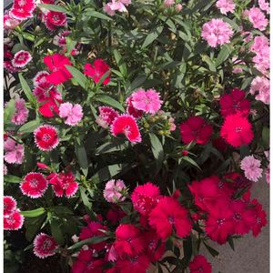 2年目のナデシコさんです❣️ 鉢植えに植えてたものですがモリモリに咲きました🤗 ウリハムシがでるかも、と聞きましたので注意しておきます💖 可愛い😍💕