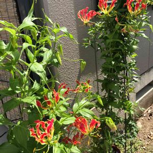 グロリオサ 10号鉢に植えた方も、地植えの方も咲いてきて、元気をもらっています❣️