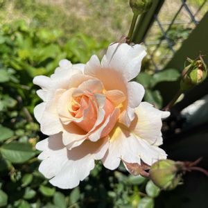7月15日 (火) おはようございます☁️ 朝のバラ🌹 🌹メーヴェ 夏色❗️ 🌹コフレ 先週の投稿から咲き進み開いてました〜 先進むと、退色して白っぽくなるんですね、白っぽいコフレもいい💕